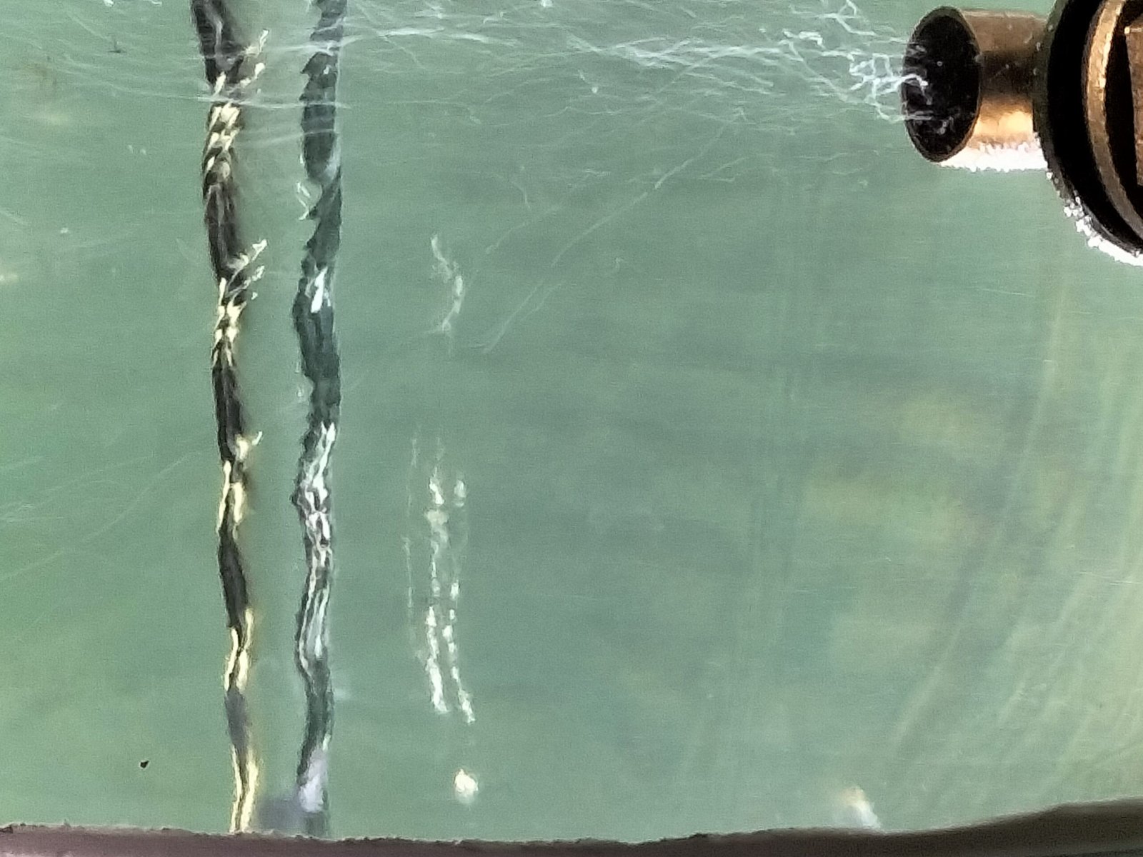 Quand le moteur est arrêté et que la trombe a disparu, l’eau reste malgré tout en mouvement.